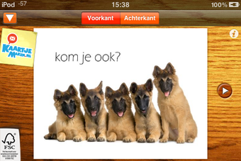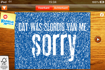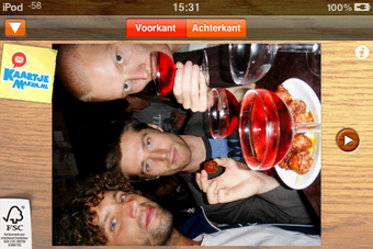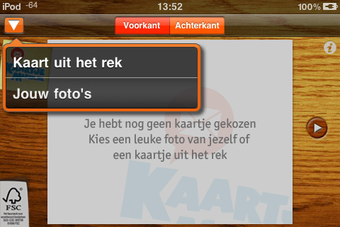 KaartjeMaken is een gratis applicatie waarmee je vanuit elke plek op de wereld een kaart stuurt. Deze kaart ontwerp je zelf, met een foto van je iPhone / iPod touch of een prentbriefkaart uit het digitale kaartenrek.